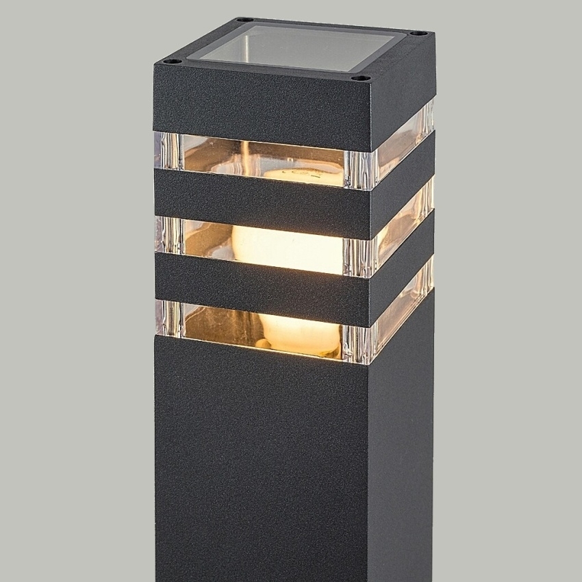 Moderní venkovní stojací lampa Ankara může být stylovým doplňkem vaší zahrady, ať už pro osvětlení chodníku přes zahradu, nebo pro osvětlení zvýrazněných částí v zahradě. Antracitově šedá hliníková svítilna je zakončena průhledným plastovým stínítkem s pásovou projekcí, která poskytuje efekt náladového osvětlení. Dlouhá lampa ve tvaru štěrbiny je zakončena plochým, rozšířeným podstavcem. Ankaru lze použít s jedním světelným zdrojem o výkonu do 12 W, typ patice E27. Vnější svítidlo má výšku 740 mm a montážní hloubku 130 mm. Krytí IP44 zaručuje, že svítidlo je chráněno proti vniknutí předmětů o průměru až 1 mm a proti stříkající vodě z jakéhokoli směru. Venkovní stojací lampa Ankara se dodává bez světelného zdroje.