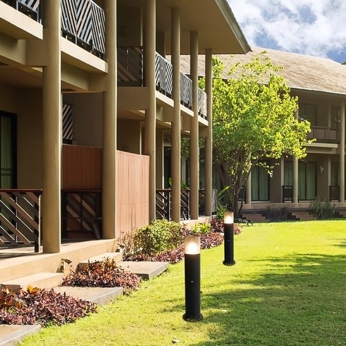 Moderní venkovní stojací lampa Teplice se senzorem pohybu může být praktickým doplňkem vaší zahrady. Matná černá hliníková svítilna doplňuje tónované plastové stínítko, které poskytuje skutečně atmosférické osvětlení. Robustní válcová základna lampy spolu s podstavcem ve tvaru disku zajišťují potřebnou stabilitu. Teplice lze použít s jedním světelným zdrojem s maximálním výkonem do 12 W, typ patice E27. Dle svého vkusu si můžete vybrat zdroj teplého nebo přirozeného bílého světla. Inteligentní snímač, který mění jas světla podle podmínek, rozpozná pohyb ze vzdálenosti 6-8 metrů při úhlu záběru 105°. Zahradní lampa má průměr 80 mm a výšku 440 mm. Krytí IP44 zaručuje, že Teplice jsou chráněny proti vniknutí předmětů o průměru až 1 mm a proti stříkající vodě z jakéhokoli směru. Venkovní stojací lampa Teplice se dodává bez světelného zdroje.