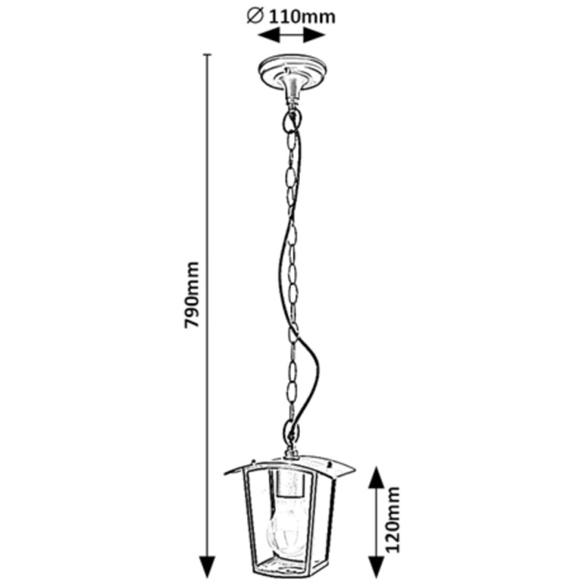 Venkovní závěsné svítidlo Taverna v klasickém stylu je vyrobeno z hliníku v matné černé barvě a je doplněno o průhledné plastové stínidlo. Je skvělou volbou na terasu, kde vytvoří útulnou, intimní atmosféru, použijete-li jej se žárovkou vyzařující teplé bílé světlo. Tento model s kulatou ozdobnou základnou a řetězem lze použít s jednou žárovkou o výkonu až 15W. Typ zásuvky je E27. Rozměry svítidla Taverna jsou následující: šířka stínítka je 170 mm, výška 120 mm, vzdálenost od stropu 790 mm, montážní průměr 110 mm. Toto venkovní závěsné svítidlo má krytí IP44, které zajišťuje ochranu proti vniknutí předmětů do průměru 1 mm a proti stříkající vodě z jakéhokoli směru. Toto svítidlo se dodává bez světelného zdroje.