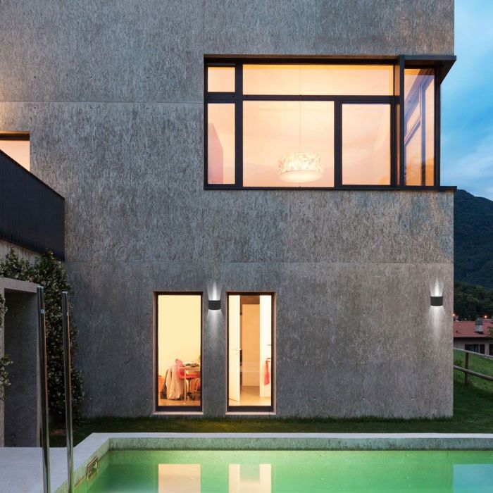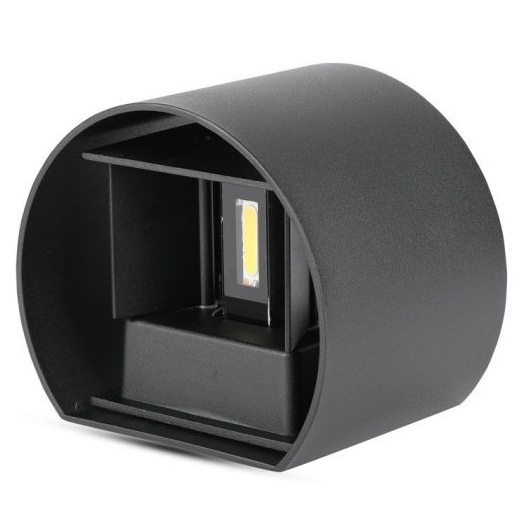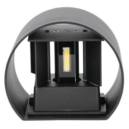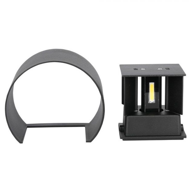 Nástěnné svítidlo s integrovaným 5W LED osvětlením a technologií SMD LED. Dvojitý světelný zdroj s průhledným krytem a nastavitelnými lamelami. Zaoblený designový tvar z černého kovu. Světelný paprsek 120° a světelný tok 700lm. Vysoký jas a poměr 140 lm/W. Stupeň krytí IP65 pro venkovní použití. Dostupné s: Teplá bílá 3000K a Přírodní bílá 4000K. Rozměry: 140x115x100mm.