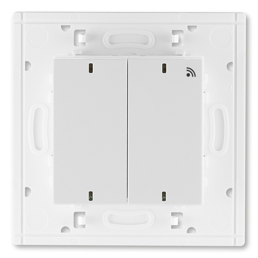 Vysílač RF dvojnásobný, nástěnný při stisknutí jednotlivých částí hmatníku se vyšle odlišný kód (lze tak nezávisle ovládat jeden nebo dva přijímače).