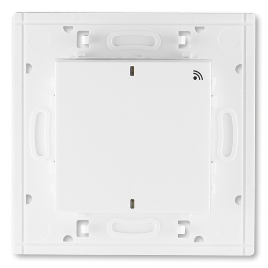 Vysílač RF jednonásobný, nástěnný při stisknutí jednotlivých částí hmatníku se vyšle odlišný kód (lze tak nezávisle ovládat jeden nebo dva přijímače).