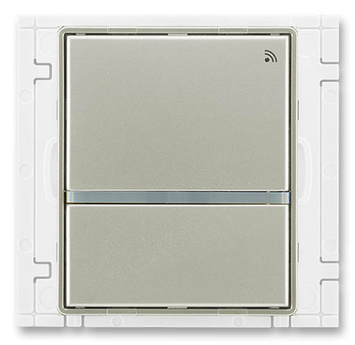 Time®, Element® | Bezdrátové radiofrekvenční (RF) ovládání | Vysílač RF signálu, nástěnný, dvojtlačítkový | STAROSTŘÍBRNÁ|| Př i stisknutí jednotlivých částí hmatníku se vyšle odlišný kód (lze tak nezávisle ovládat jeden nebo dva přijímače).