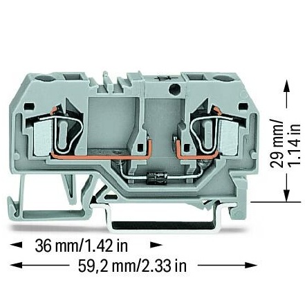 Svorka pro moduly; 2 vodiče; S diodou 1N4007; Anoda vlevo; Na DIN lištu 35 × 15 a 35 × 7,5; 4 mm²; CAGE CLAMP®; 4,00 mm²; Šedá