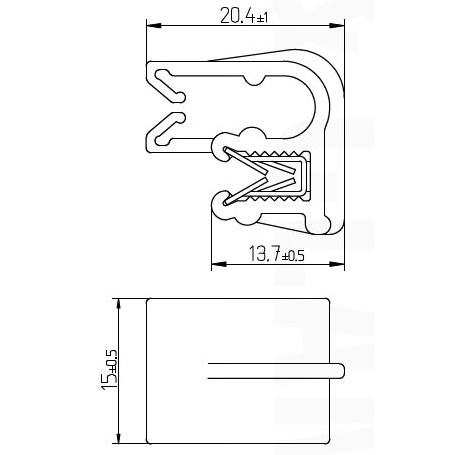 Kabelová příchytka určená pro připevnění na hranu plastového nebo kovového profilu.