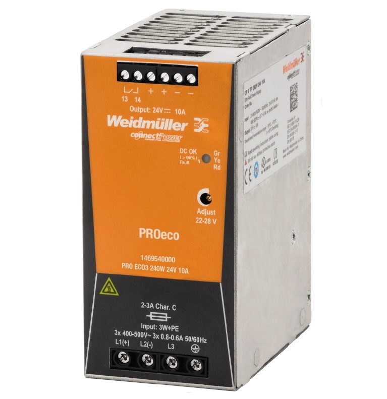 Napájecí zdroj Weidmuller pro lištu DIN, výstupní proud 10 A, účinnost 88 % – řada PRO ECO – 1469540000