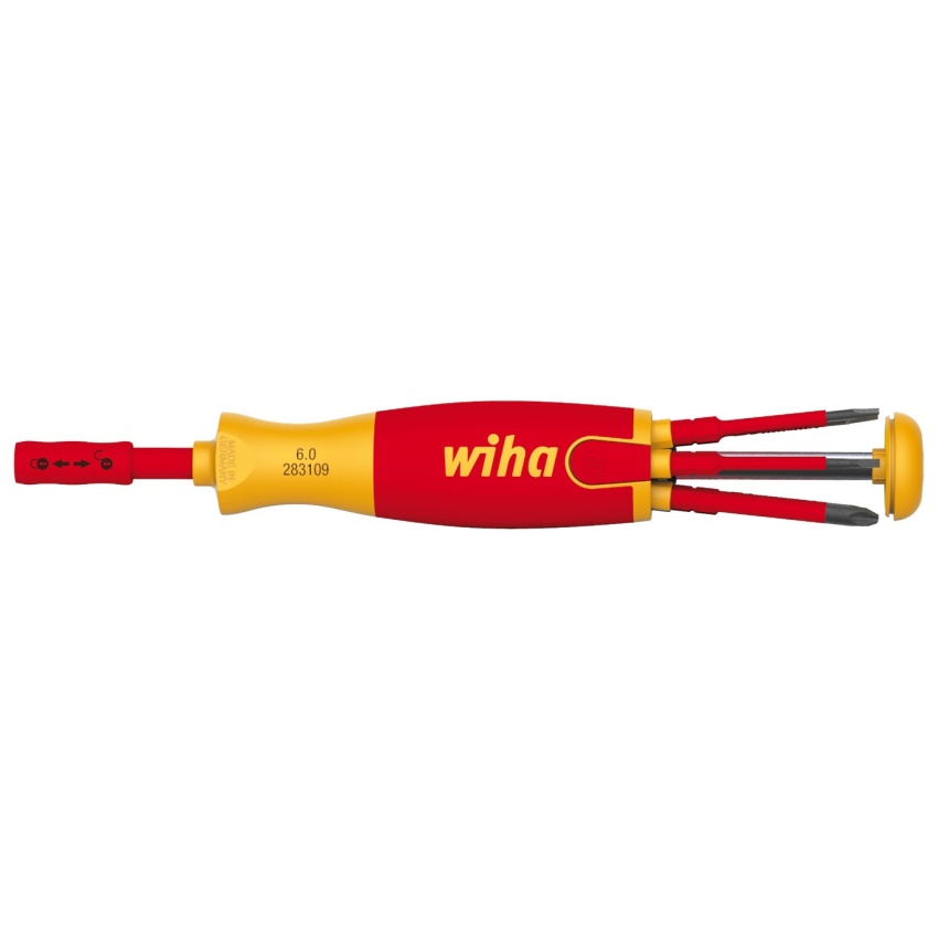 Šroubovák se zásobníkem nástavců LiftUp electric je ideálním průvodcem každého elektrikáře při mobilním nasazení. Vložka s nástavcem schovaná v rukojeti nabízí místo pro 6 běžných simBitů a po stisknutí tlačítka vyjede ze zásobníku. Tím je zajištěno jednoduché vyjímání nástavců. Osvědčený držák ClicFix bezpečně zachytí všechny nástavce a spolehlivě je zablokuje. Tato technologie udělá ze zásobníku nástrojů univerzálně použitelný šroubovák. I v otázce bezpečnosti nabízí zásobníkový držák nástavců to maximálně možné. Jak zásobníkový držák nástavců, tak i obsažené slimBit jsou certifikovány podle mezinárodní normy IEC 60900. Štíhlé slimBity dlouhé 75 mm díky ochranné izolaci v přední oblasti plně integrované do bitu zajišťují perfektní přístup k hluboko položeným šroubovým nebo pružinovým svorkám. Dalším plusovým bodem je otočná krytka, která zajišťuje komfortní manipulaci.