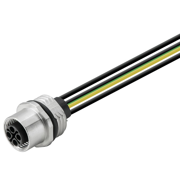 Kulatá zásuvka pro instalaci. S připojeným kabelem.