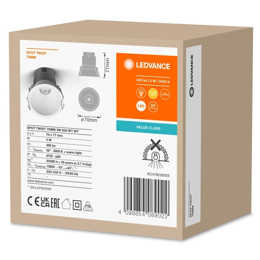 Spot Twist 70mm 5W 3000K Bílá Bílá
