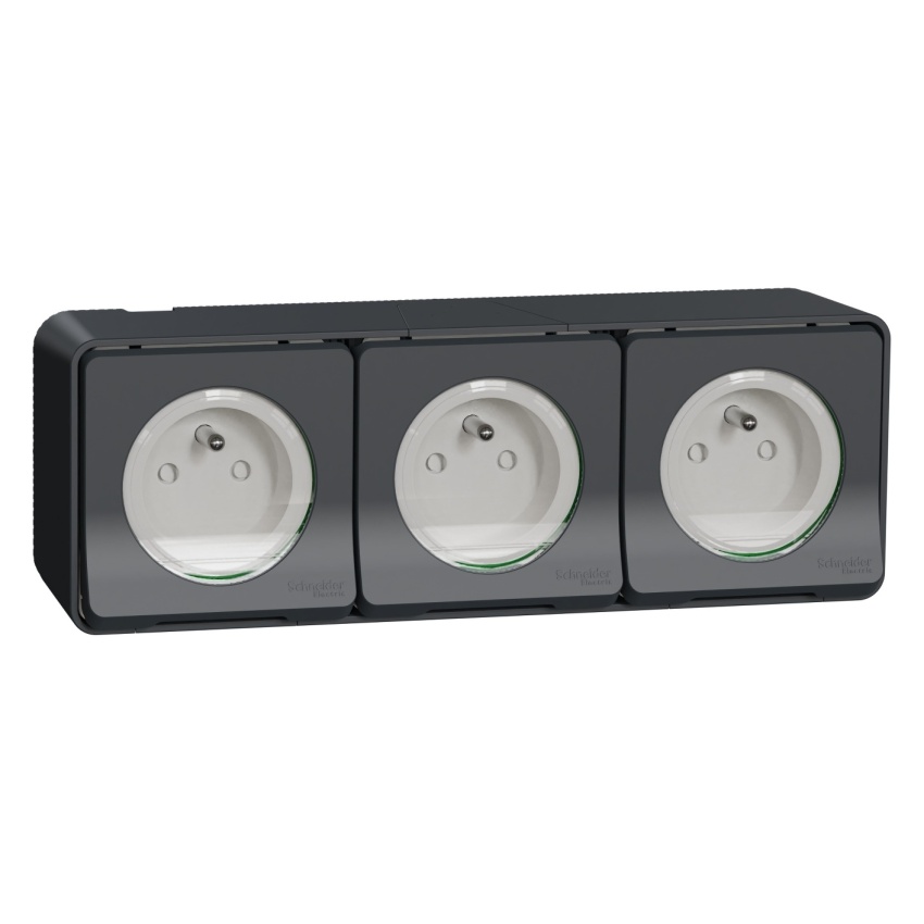 Zásuvka jednonásobná 2P+E trojitá, v šedé barvě. 16 A