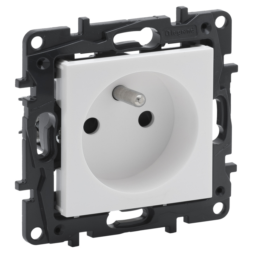 Zásuvka 2P+T s clonkami, bezšroubová, bílá