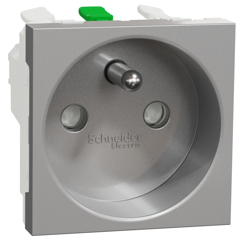 Zásuvka 2P+PE se zemnícím kolíkem NU305930E, v barvě aluminium.