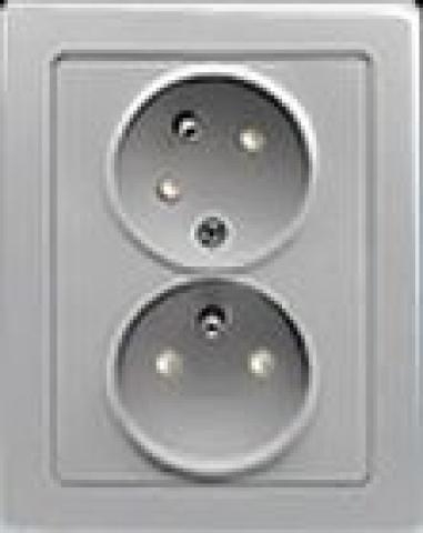 5513J-C02357 S1 Zásuvka dvojnásobná, s clonkami, s natočenou dutinou, světle šedá, ABB Swing L