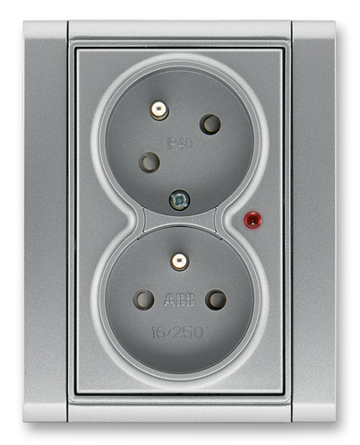 Zásuvka dvojnásobná s natoč. dutinou, s přepěťovou ochranou, s opt. sig., ocelová, ABB Time