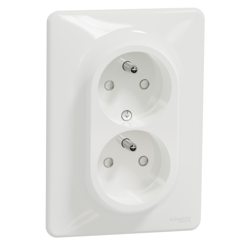 Zásuvka dvojnásobná 2P+PE se zemnícím kolíkem, v bílé barvě. 16 A - 250 V ∿
