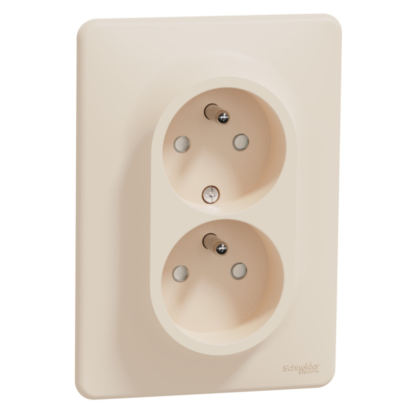 Zásuvka dvojnásobná 2P+PE se zemnícím kolíkem, v béžové barvě. 16 A - 250 V ∿