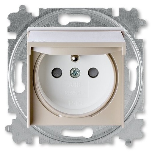 Jednonásobná zásuvka s clonkami a víčkem, s krytím IP44 a bezšroubovými svorkami. Barevné provedení: macchiato/bílá. 2P+PE. Připojení vodičů bez šroubů