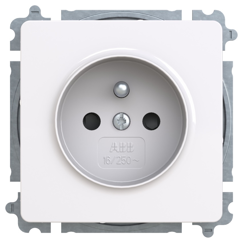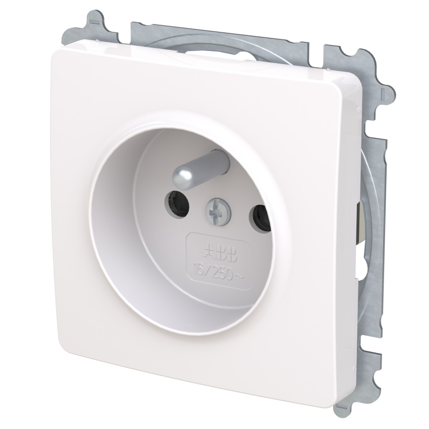 Zásuvka jednonásobná s ochranným kolíkem, s integrovanými clonkami