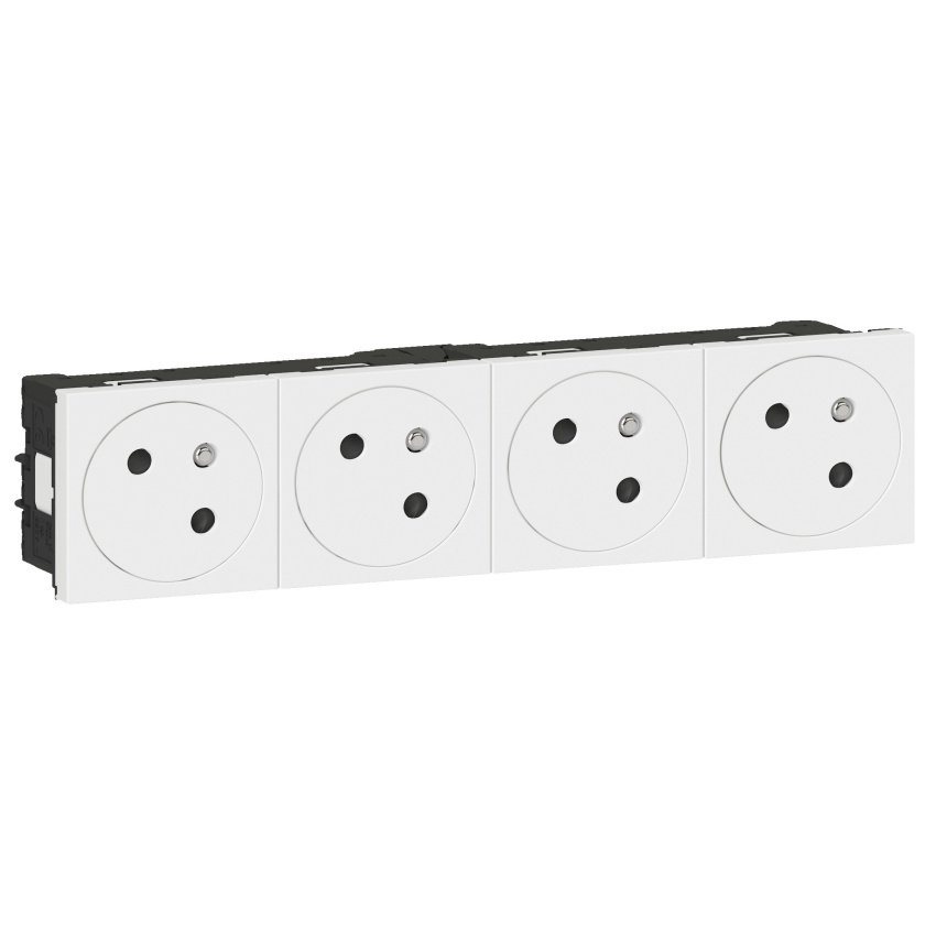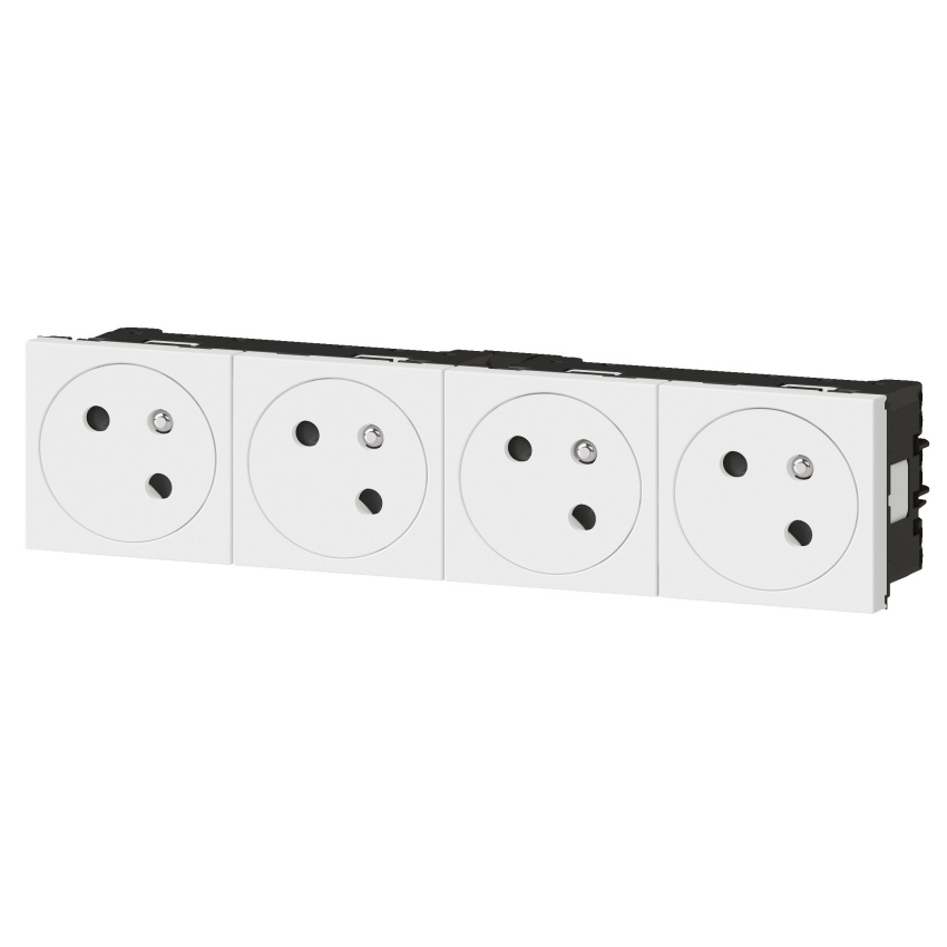 Zástrčka Legrand 2P+T nebo povrchová zásuvka jsou modulární a lze je kombinovat pro instalaci do podlahových krabic, sloupů, baloků, deskových bloků, kmenů a krabic, doporučuje se hloubka instalace 50 mm. zásuvky 45 ° s bočním připojením přes automatické zakončkyschopné. S připojovacím příslušenstvím umožňujícím připojení dalších konektorů Mosaic Link.