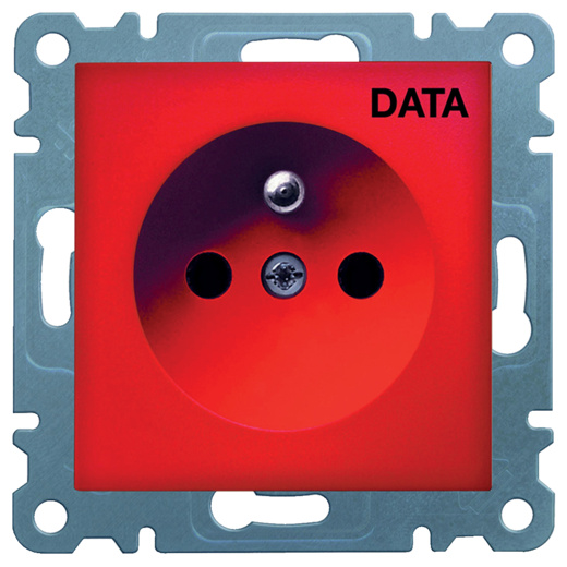 Zásuvka se zemnícím kolíkem a potiskem "DATA", červená lesk