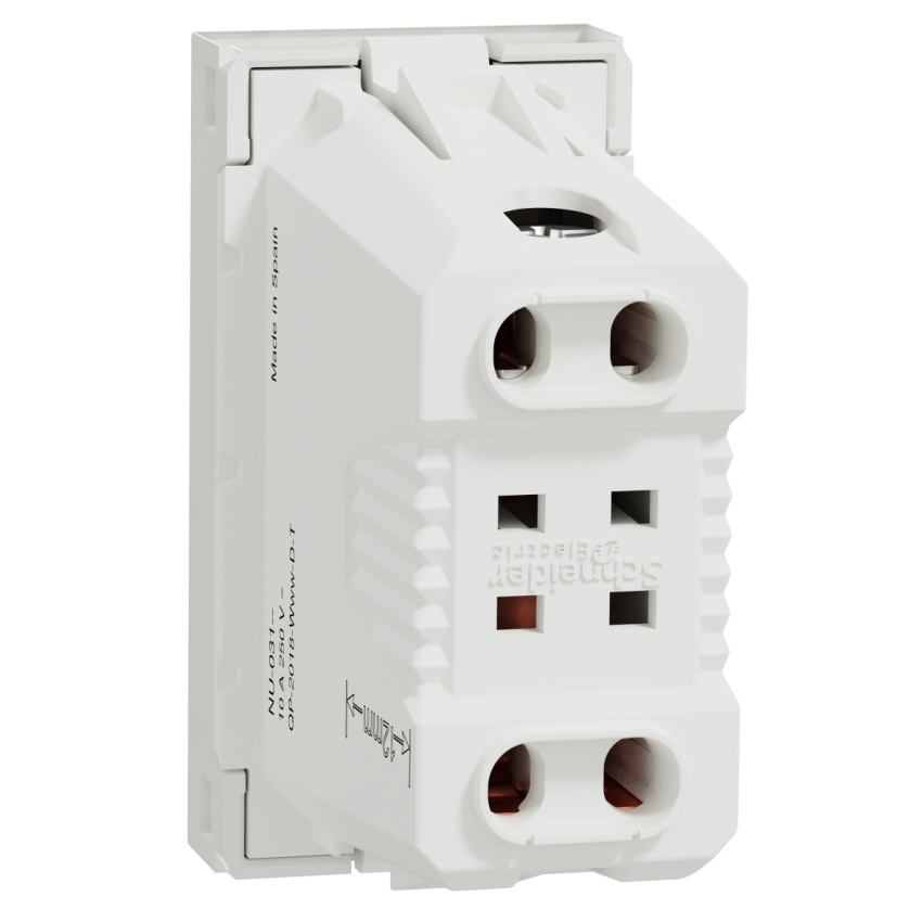 Zásuvka pro ploché vidlice NU303118, v bílé barvě.