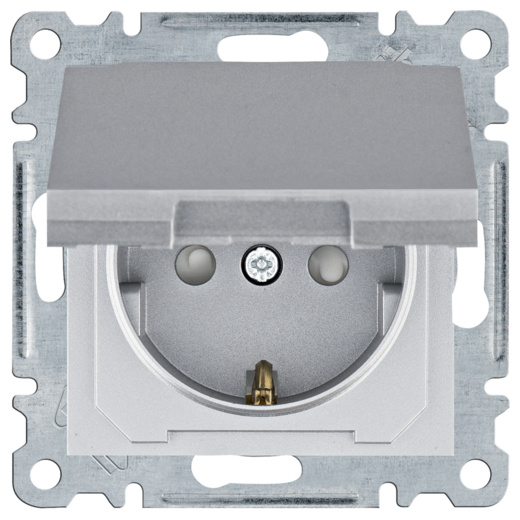 Zásuvka schuko s clonkami a víčkem, stříbrná mat