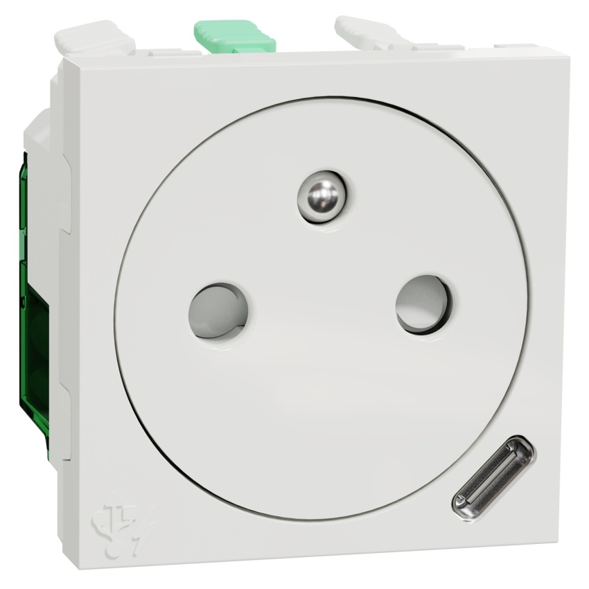 Zásuvka se zemnícím kolíkem NU301518E, v bílé barvě.