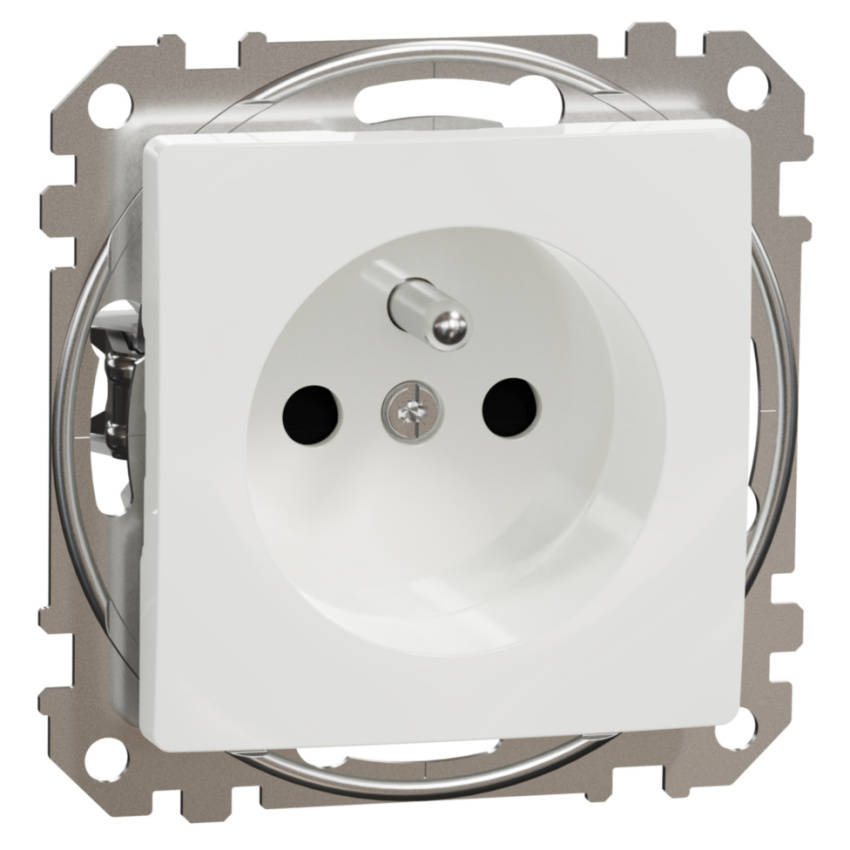 Zásuvka 2P+PE se zemnícím kolíkem, v bílé barvě. 16 A - 250 V ∿