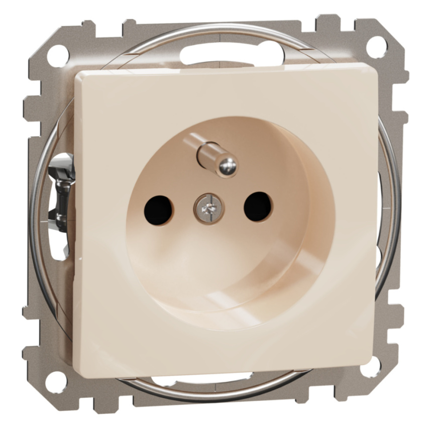Zásuvka 2P+PE se zemnícím kolíkem, v béžové barvě. 16 A - 250 V ∿