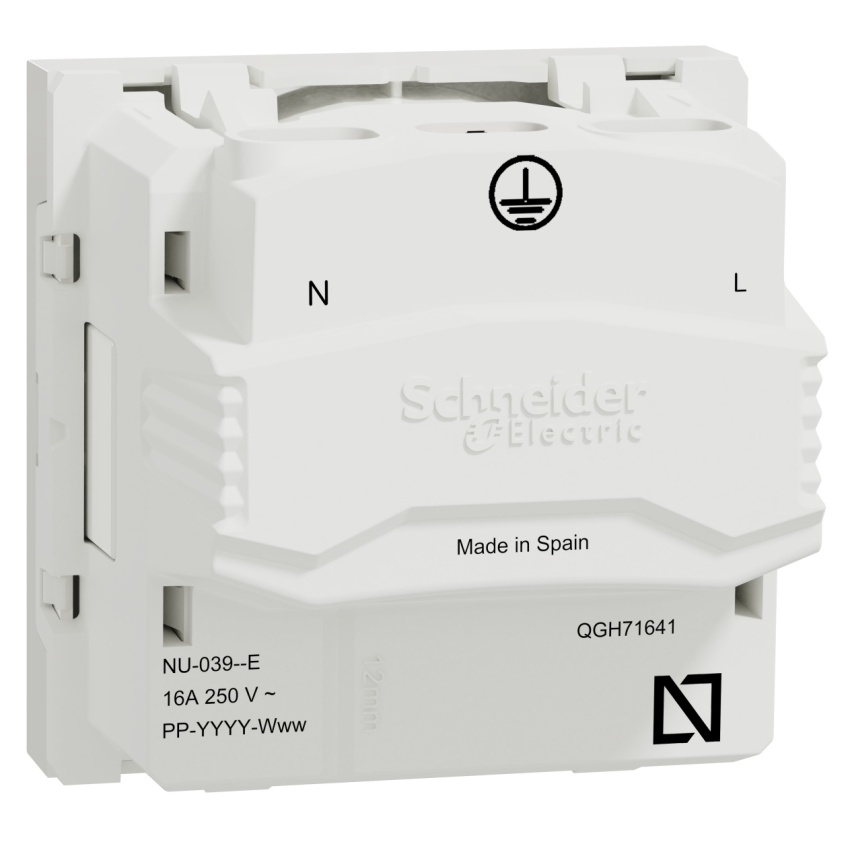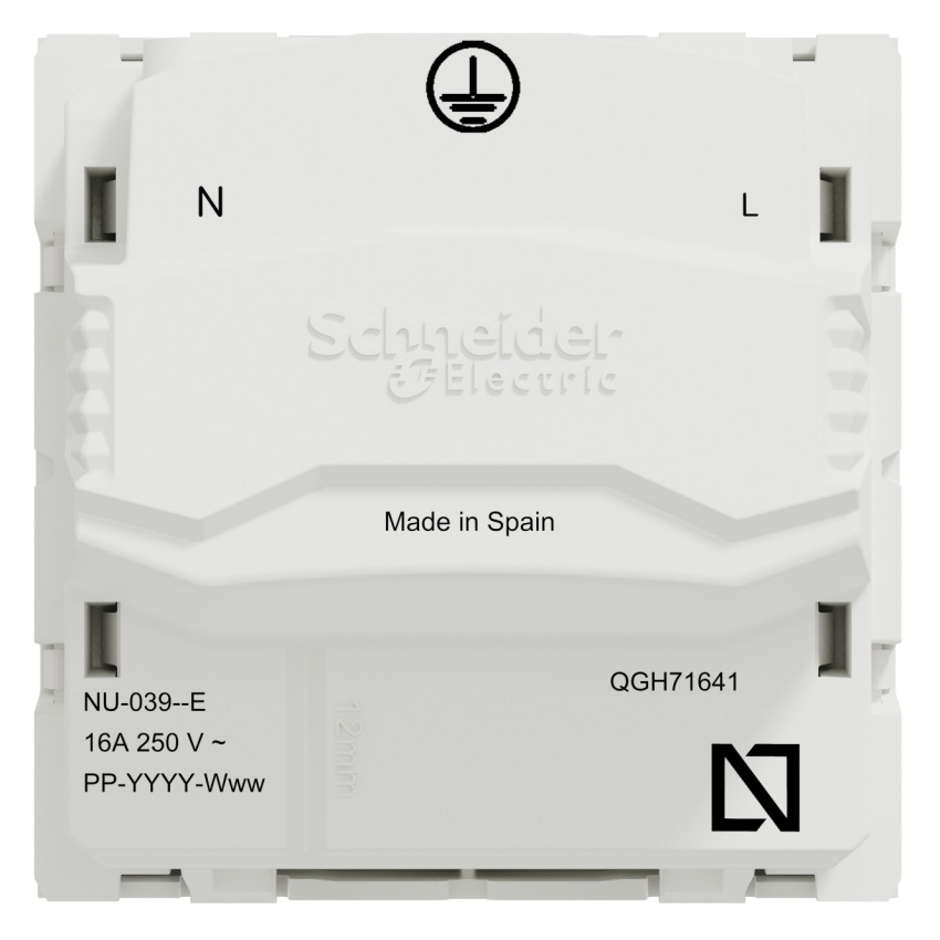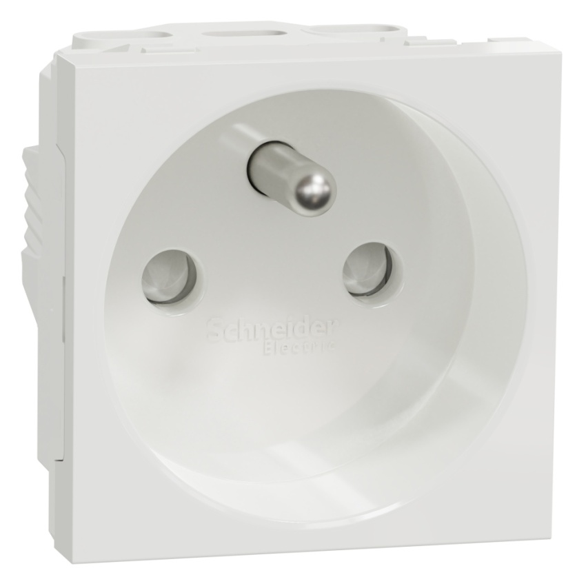 Zásuvka se zemnícím kolíkem NU303918E, v bílé barvě.
