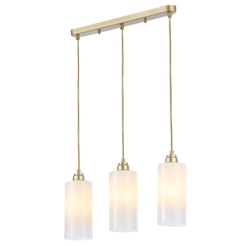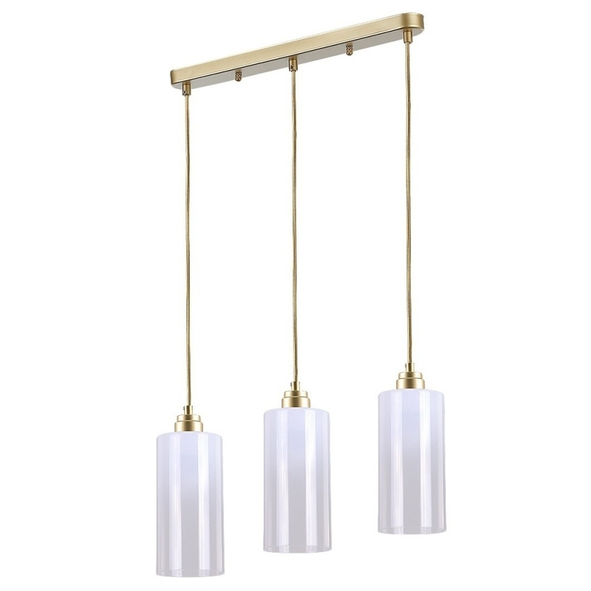 Trojité závěsné svítidlo Panthea, které představuje moderní styl, bude zdrženlivým a elegantním doplňkem k zařízení vašeho obývacího pokoje, jídelny nebo kuchyně. Zlaté svítidlo je doplněno poloprůhlednými bílými stínítky; svítidlo je možné připevnit na strop pomocí prodlouženého ozdobného podstavce se zaoblenými konci. Tři podlouhlé válcovité stínidla, které visí v různých výškách, jsou s dekorativní základnou spojené textilními kabely. Toto závěsné svítidlo je možné použít s třemi žárovkami, z nichž každá má výkon až 40W. Typ patice je E27. Pokud chcete v místnosti dosáhnout moderní a jasný efekt, vyberte si přirozené bílé světelné zdroje. Rozměry trojitého závěsného svítidla Panthea jsou následující: šířka 500 mm, průměr každého stínítka je 100 mm, vzdálenost od stropu 1 700 mm. Tento model se dodává bez světelných zdrojů.
