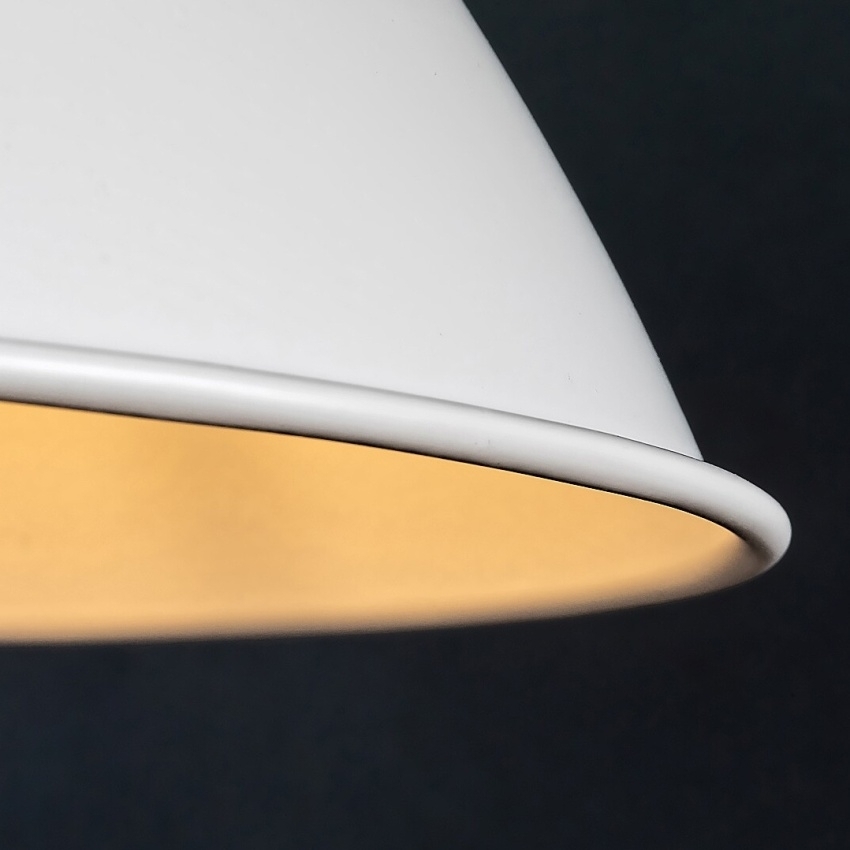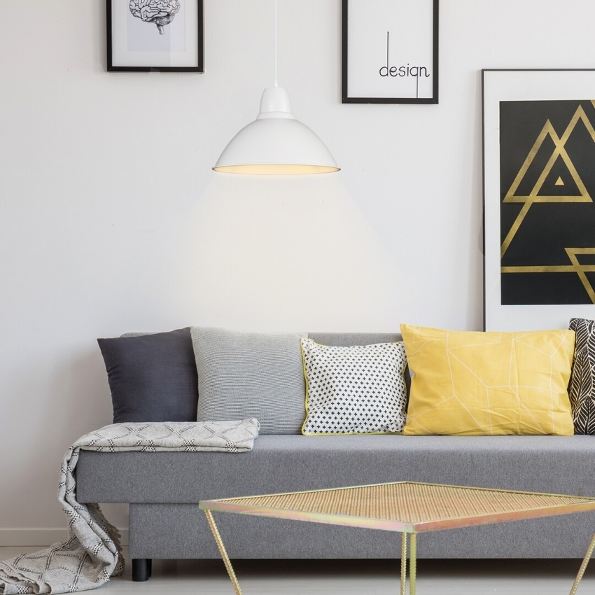 Jednodílný lustr Wilbour v industriálním stylu může být jedinečným doplňkem moderního obývacího pokoje nebo jídelny. Bílé svítidlo, celé vyrobené z kovu, je doplněno o bílé stínítko a lze jej připevnit na strop pomocí malé kulaté dekorativní základny. Široké stínítko lampy ve tvaru deštníku umožňuje vytékání světla na velké ploše ve spodní části, takže svítivost lampy je vynikající. Wilbour lze použít s jedním světelným zdrojem o výkonu až 60 W, objímkou typu E27. Dle vašeho vkusu si můžete vybrat zdroj světla s teplým nebo přirozeným bílým světlem. Pokud se rozhodneme pro druhou možnost, můžeme dosáhnout čistého, moderního efektu, který je ideální do místností s vysokou návštěvností v naší domácnosti. Rozměry každého přívěsku Wilbour: průměr 360 mm, přesah 1200 mm, montážní průměr 100 mm. Tento model je dodáván bez světelného zdroje.
