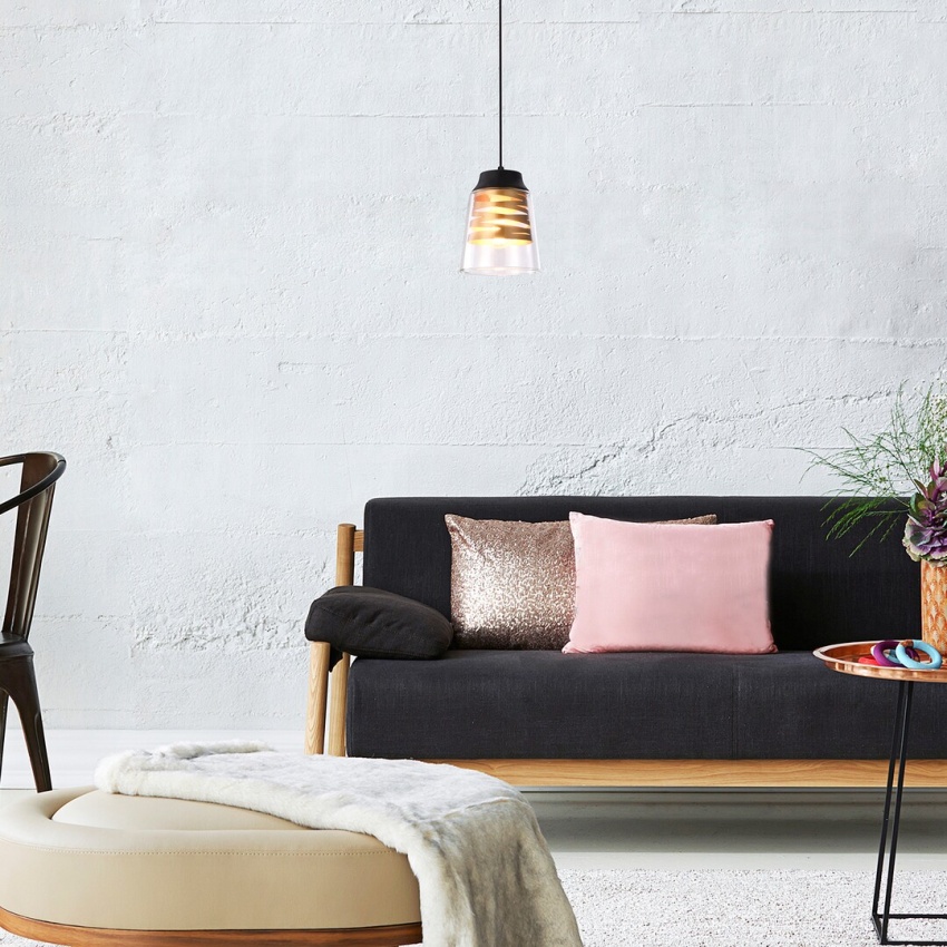 Závěsné svítidlo Zenaida v moderním stylu bude elegantním doplňkem vašeho moderního obývacího pokoje, ložnice, jídelny nebo dokonce kuchyně. Matné černé svítidlo vyrobené z kovu je doplněno průhledným skleněným stínítkem s páskou ve zlaté barvě uvnitř, které obklopuje světelný zdroj. Toto svítidlo je možné připevnit na strop pomocí matného černého kulatého ozdobného podstavce. Hlava svítidla je spojena s ozdobným podstavcem textilním kabelem. Svítidlo Zenaida je jako velkolepá a lahodná kávová specialita naplněna v šálku z dvojitého skla, která visí vzhůru nohama na stropě. Tento model lze použít s jednou žárovkou s výkonem až 60W. Typ patice je E27. Pokud chcete vylepšit intimní a útulnou atmosféru, vyberte si pro toto svítidlo teplý bílý světelný zdroj. Rozměry závěsného svítidla jsou následující: průměr stínítka je 155 mm, vzdálenost od stropu 1 200 mm, instalační průměr 90 mm. Tento model se dodává bez světelného zdroje.